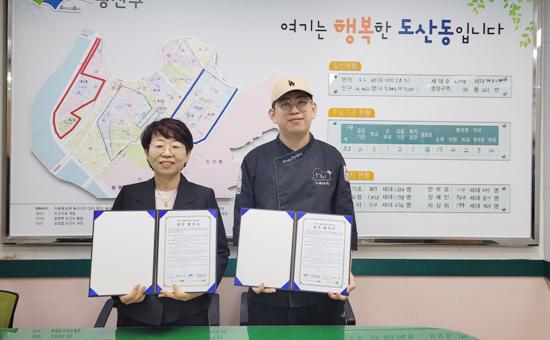 도산동은 2일 지역 내 제과점 ‘케익하우스 미엘’과 지역사회 복지위기가구 발굴 및 지원에 상호 협력한다는 업무협약을 체결했다.