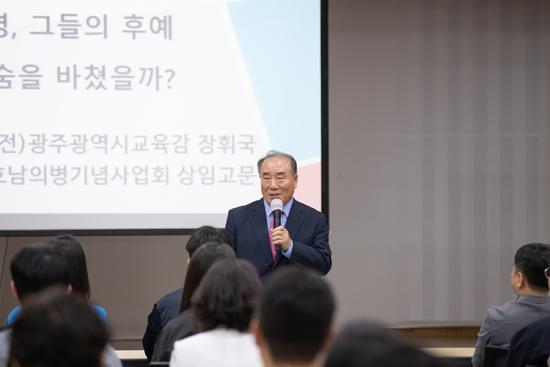 강사로 초빙된 장휘국 前 교육감은 한말 호남의병 정신이 가진 의미와 가치를 강조하며, 호남의병의 역사적 배경, 주요 전투, 숭고한 정신 등을 자세히 설명했다. 또 죽봉대로, 대천로, 서암대로, 설죽로, 금재로 등 익숙한 도로명이 호남 의병장들의 호에 따온 이름이며 “호남의병의 숭고한 희생을 토대로 오늘의 대한민국이 만들어졌음을 잊지 말아야 한다”고 강조했다.