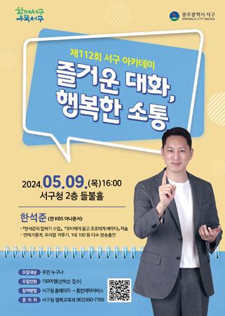 광주시 서구는 9일 오후 4시 서구청 들불홀에서 한석준 아나운서를 초청해 제112회 서구 아카데미를 개최한다.