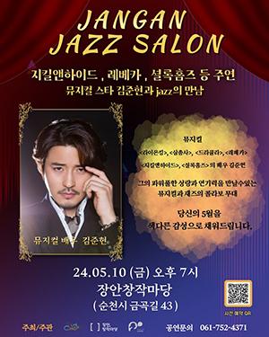 오는 10일 오후 7시,‘장안 재즈 쌀롱’에서는 뮤지컬 배우 김준현이 출연해 뮤지컬과 재즈의 콜라보를 선보일 예정이다. 이번 공연은 뮤지컬 배우 김준현의 음악과 더불어 다양한 이야기를 들을 수 있는 토크콘서트 형태로 진행된다. 김준현은 뮤지컬 지킬앤하이드, 레베카, 드라큘라, 셜록홈즈에서 주연은 맡는 등 다수 뮤지컬 작품에 출연했다.