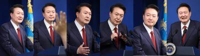 윤 대통령은 9일 오전 서울 용산 대통령실에서 열린 \'윤석열정부 2년 국민보고 및 기자회견\'에서 다양한 현안에 답했다.