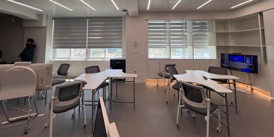 사전 미래교실 전면 중앙에는 대형 전자칠판이 설치됐다. 로봇이 교실 곳곳을 돌아다니며 학습 지원을 돕는다. 교실 공간은 학생들 간 적극적인 토론·소통·협력이 가능하도록 모둠형으로 배치됐다. 1인 1 미디어 활용 환경을 조성했다.