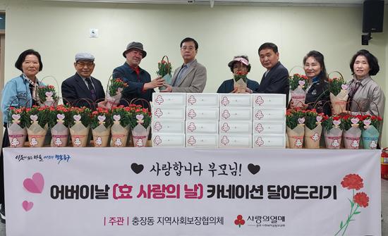 광주 동구 충장동 지역사회보장협의체는 지난 8일 어버이날을 맞아 ‘효(孝) 사랑의 날 카네이션 달아드리기’ 행사를 가졌다고 밝혔다.
