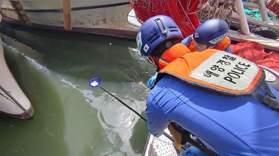 목포해양경찰서가 지난 12일 목포시 동명항 내 해양오염을 자체 인지하고 긴급 방제 조치를 실시했다.