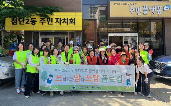 광주 광산구 첨단2동 사회단체장협의회가 14일 남부대학교 총학생회와 함께 ‘쓰담쓰담 플로깅(환경 정화 걷기 활동)’을 진행했다.