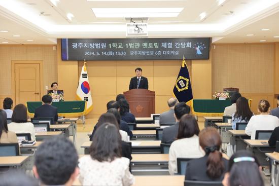 광주시교육청이 지난 14일 광주지방법원 대회의실에서 ‘1학교 1법관 진로 멘토링’ 체결식을 진행했다.