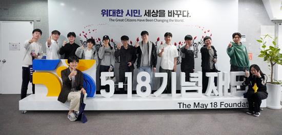 경북대학교 인권동아리 \'오버더블랭크\'가 지난 5일 5·18기념재단을 찾아 기념촬영을 하고 있다. /5·18기념재단 제공