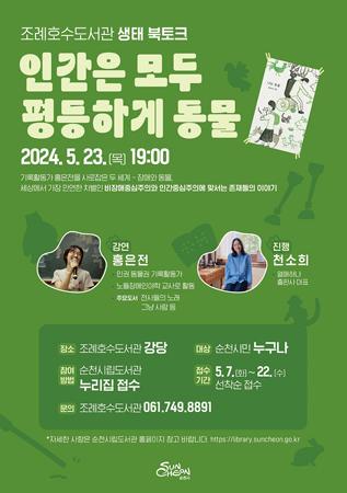 생태 북 토크에 참여하고 싶은 시민은 오는 22일까지 순천시립도서관 누리집을 통해 신청할 수 있다.