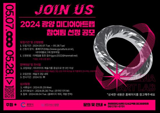 광양문화도시센터가 오는 28일까지 ‘2024 광양 미디어아트랩’ 사업에 참여할 예술팀을 모집한다고 밝혔다.
