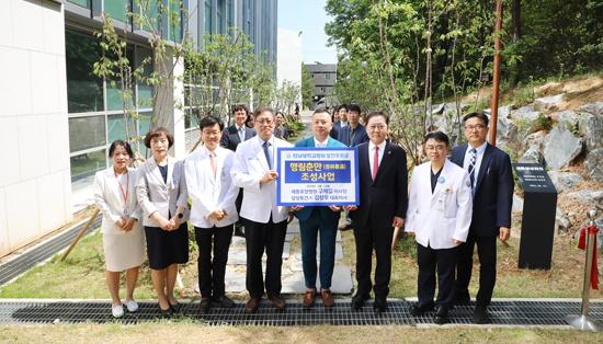 광주세종요양병원 구제길 이사장과 상상토건(주) 김상우 대표이사가 전남대학교병원 환자 및 직원들의 휴게공간인 ‘행림춘만’을 조성해 기증했다.