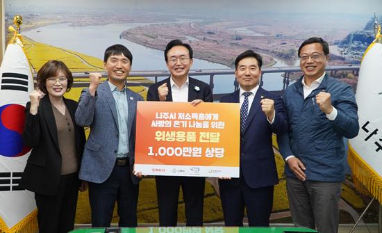 나주시는 양 기관이 사회·경제적으로 어려움을 겪고 있는 나주 취약계층을 위해 손 세정제 160통, 1000만원 상당의 가글·치약 1150개를 기탁했다고 20일 밝혔다.