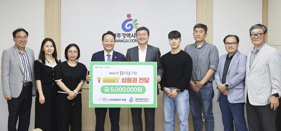 광주 동구는 22일 와이마트 부설 사단법인 피플위드피플에서 구청을 방문해 돌봄 이웃 지원을 위한 와이마트 상품권 5백만 원을 전달했다고 밝혔다.