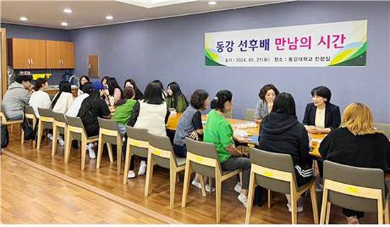 동강대학교 유아교육과는 지난 21일 대학교 진향실에서 산학 연계를 위한 \'선후배와 만남의 시간\'을 가졌다. 이번 행사는 현장에서 근무하는 선배와 예비교사가 점심시간을 활용해 영·유아교육 현장에 대한 질문과 면접에 대한 이야기를 나누는 시간으로 구성됐다.