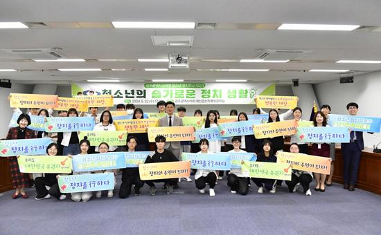 광주시교육청이 지난 22일 광주광역시의회에서 지난해부터 시·도 교육청 단위로 최초로 운영 중인 ‘2024년도 제2기 청소년 정치학교’ 개강식을 개최했다.