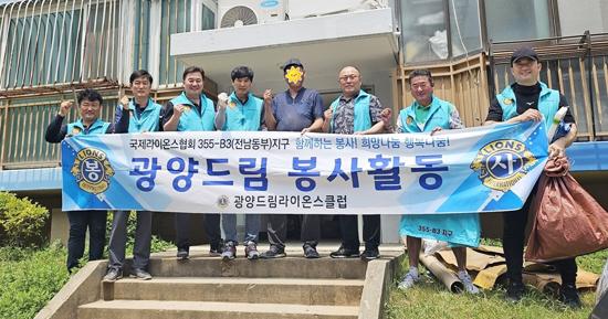 광양시 광양읍은 국제라이온스협회 335-B3(전남동부)지구 광양드림라이온스클럽 회원 10여 명이 광양읍 주거취약가구를 대상으로 집수리(200만원 상당)와 주거 청소 봉사에 나섰다고 29일 밝혔다.