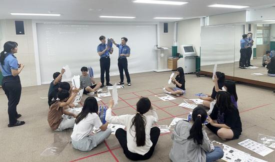 이번 특강은 학생들의 해양 안전 의식 마련과 해양경찰 인식 제고를 위해 △물놀이 안전수칙 △구명조끼 착용법 △심폐소생술 교육 △해양경찰 홍보 영상 시청 및 경비함정 모형 종이접기 등 흥미를 유발할 수 있는 체험 중심으로 운영됐다.
