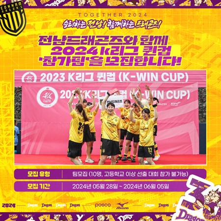 전남드래곤즈가 2024 K리그 여자축구대회 ‘퀸컵(K-WIN CUP)’에 함께할 팀을 모집한다.