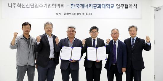 켄텍(한국에너지공과대학교)은 지난달 29일 나주혁신산단입주기업협의회(회장 이남)와 지역사회 상생 및 발전을 위한 업무협약을 체결했다고 밝혔다. /한국에너지공대 제공