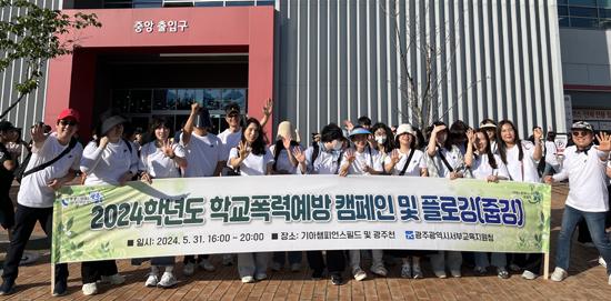 광주서부교육지원청이 지난 5월 31일 기아챔피언스필드에서 ‘광주교육가족 희망 스포츠데이’를 맞아 ‘학교폭력예방 캠페인 및 플로깅(줍깅)’을 실시했다.