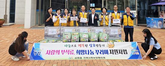 영암군 삼호읍지역사회보장협의체가 지난달 30일 지역특화 ‘부식류 및 희망나눔 꾸러미 지원사업’으로 취약계층 15가구에 삼계탕 등 부식을, 20가구에 희망나눔으로 선풍기를 전달하며 안부를 살폈다.