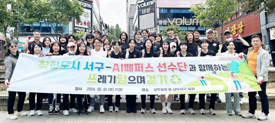 이날 행사는 AI페퍼스 선수단과 서구 배구동호회원, 서구청 직원 등 70여 명이 참여했으며 ‘착한도시 서구’가치 실현의 의지를 함께 다졌다.