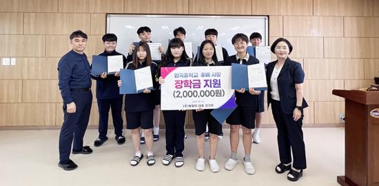 임곡중학교가 지난 3일 제40회 졸업생 선기주 ㈜엠알티 대표이사에게 제78회 개교기념일 맞아 모교 학생 10명에게 1인당 20만 원씩 총 2백만 원의 장학금을 전달했다.