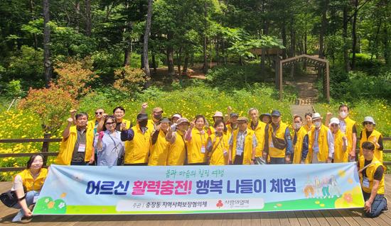 이날 국립나주숲체원에서 열린 행사에는 어르신과 충장동 지사협 위원들이 1:1 매칭으로 ‘마실 숲’과 ‘숲 한 빛깔 염색’ 등을 함께 체험하면서 단합과 소통의 시간을 보탰다.
