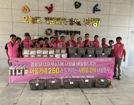 광영동마을관리사회적협동조합은 광영어울림센터 내 ‘카페250’ 개점을 기념해 5일 광영동 어르신들께 사랑의 간식을 전달했다.