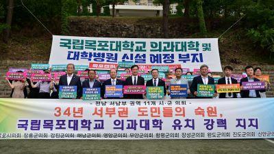목포시의회는 전남 서·남부권 11개 시군의회가 \'전남권 국립 의과대의 목포대학교 유치 지지\'를 선언했다고 8일 밝혔다.