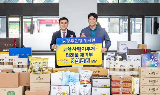 광주은행 임직원들이 고향사랑기부제 참여로 받은 답례품을 지역사회 나눔문화 확산을 위해 사회복지시설에 다시 기부했다.