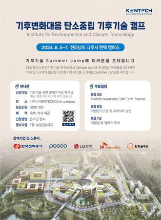 한국에너지공과대학교(켄텍·KENTECH)가 탄소중립 시대에 필요한 다양한 기술을 소개하는 \'탄소중립 기후·기술 Summer 캠프\' 대학생 참가자를 모집한다.