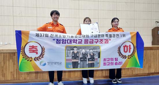 청암대학교는 공주시 중앙소방학교에서 열린 ‘제37회 전국소방기술경연대회’에서 구급분야 특별경연에서 서현규, 남설희, 김수아, 문성모(지도교수)가 출전해 1위를 수상했다고 9일 밝혔다.