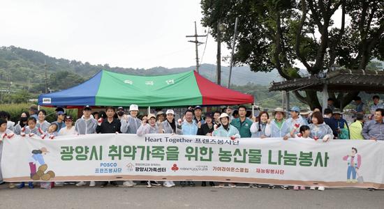 광양제철소 산하 프렌즈 재능봉사단은 광양시 옥곡면 대리마을에서 광양시와 함께 다문화가정, 한부모가정 지역 농산물 나눔 프로젝트를 진행하며 지역사회에 훈훈함을 전했다.