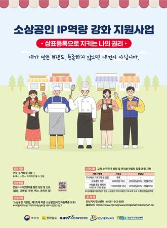 전남도는 소상공인의 안정적 경영활동과 지속가능한 성장 촉진을 위한 ‘2024년 소상공인 IP 역량강화사업’을 시행, 세부 사업별 지원사업에 참여할 소상공인을 모집한다고 밝혔다.