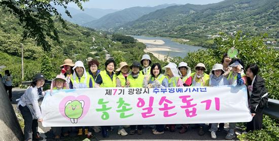 광양시 주부명예기자단이 지난 10일 매실 수확철을 맞아 고령농가를 방문해 농촌 일손 돕기 봉사활동을 펼쳤다.