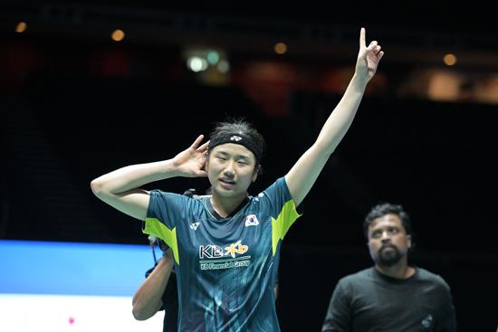 지난 2일(현지시각) 세계배드민턴연맹(BWF) 월드투어 슈퍼 750 싱가포르오픈 여자 단식 우승을 차지하며 세리머니하고 있는 안세영. 2024.06.03.