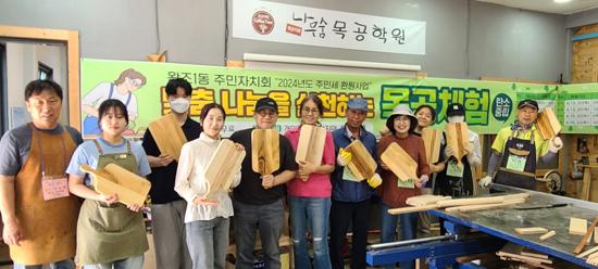 순천시 왕조1동 주민자치회(회장 이홍탁)는 관내 주민들을 대상으로 ‘맞춤나눔을 실천하는 목공체험’을 추진하고 있다.