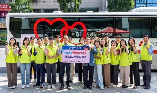 광주은행은 14일 \'세계 헌혈자의 날\'을 맞아 은행 본점 앞 헌혈버스에서 대한적십자사와 함께 \'헌혈로 사랑을 나눠요\' 캠페인을 펼쳤다고 밝혔다.