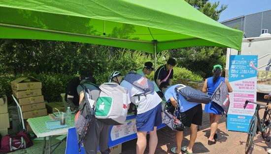 전남도는 지난 15일 경남 고성군 당항포관광지 일원에서 열린 ‘2024 아이언맨 70.3’ 대회에 참가하고, 대회장에 전남 사랑애(愛) 서포터즈 홍보관도 운영, 전남 고향사랑실천 캠페인을 펼쳤다.