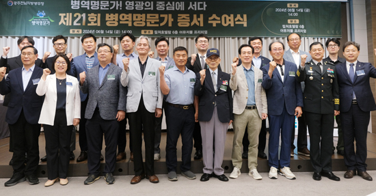 광주전남지방병무청은 지난 14일 컬쳐호텔 람 6층에서 2024년 병역명문가로 선정된 가문을 초청해 병역명문가 증서 수여식을 개최했다.