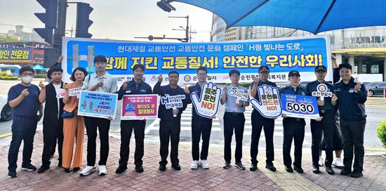 현대제철 순천공장은 순천시 주요 사거리에서 교통안전 문화 확산을 위한 캠페인을 실시했다고 17일 밝혔다.