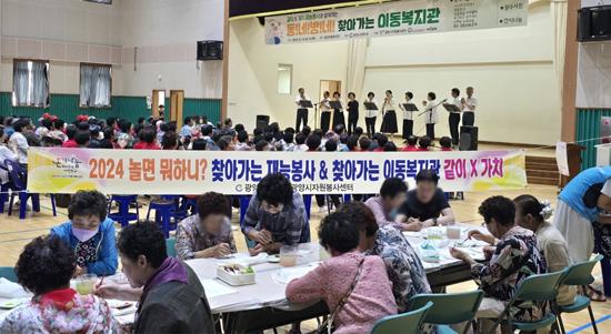 ‘동!네!방!네! 찾아가는 이동복지관’은 노인복지관을 찾아오기 어려운 지역을 직접 찾아가 서비스를 제공하고 어르신들이 체감할 수 있는 현장 중심의 여가 복지를 실현하는 사업으로 지난 4월 광양읍에서 1차 이동복지관 행사를 진행했다.