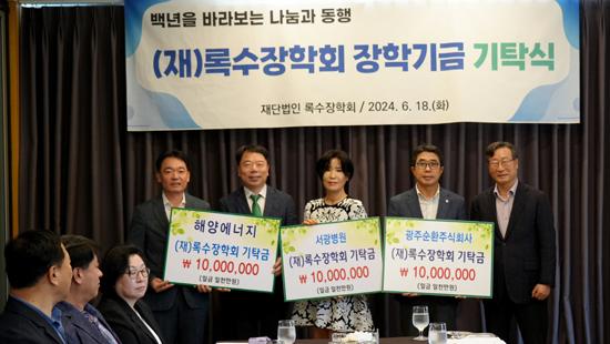 록수장학회는 1976년부터 매년 소방공무원 자녀에게 장학금을 지급하고 있으며 지난해에는 40명의 대학생에게 8000만원을 전달했다.