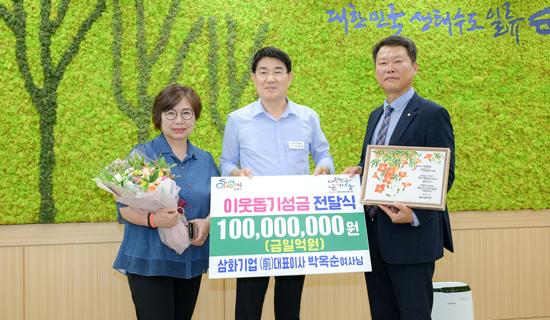 순천시는 삼화기업 前대표이사 박옥순 여사께서 1억 원을 이웃돕기성금으로 순천시에 온기나눔했다고 19일 밝혔다.