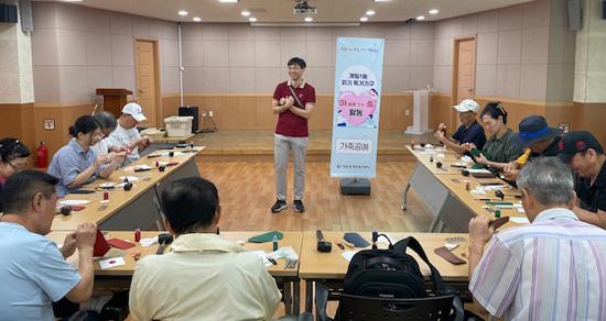 계림1동 착한가게 후원으로 마련된 이번 체험은 1인 가구가 외부 활동을 하면서 다른 참여자와 만남의 기회를 갖고, 가죽을 다루는 작업을 하면서 집중력 향상과 정서 회복하는 데 도움을 주기 위해 기획됐다.