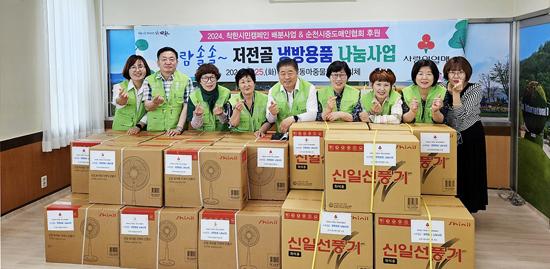이번 선풍기는 그동안 저전동 주민들이 모아 온 착한시민캠페인 사업비와 여기에 순천시 농산물도매시장 중도매인협회에서 선풍기 10대를 후원하여 총 40여 대의 선풍기를 마련했다.
