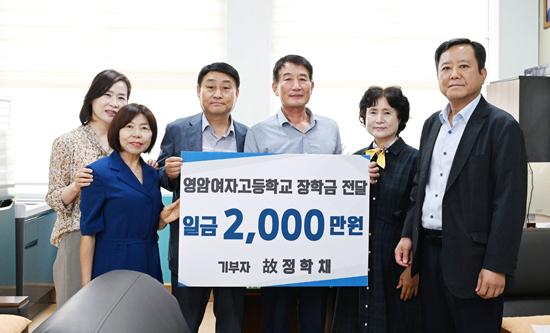 장학금을 대리 기부한 정현종님은 “숙부님께서는 교육은 꿈의 씨앗이자 그 시작이라는 생각을 가지고 우리 지역의 어려운 학생들을 돕고자 했다. 이분의 유지를 받들어, 인재 양성의 산실인 영암여고가 그 씨앗의 양분 역할을 다하여 장학금을 의미 있게 사용할 가장 적합한 학교라는 믿음을 가지고 기부하게 됐다”고 전했다.