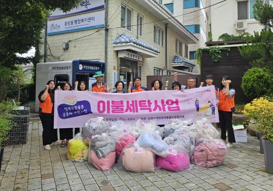 순천시 중앙동 마중물보장협의체는 지난 24일 홀로 사는 노인과 소외계층 20세대를 방문하여 \'찾아가는 이불세탁사업\'을 펼쳤다고 밝혔다.