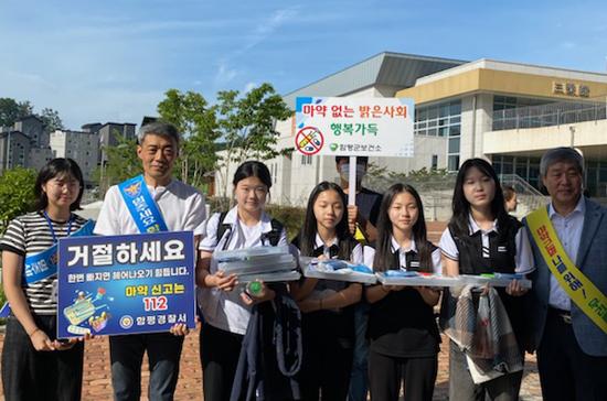 함평군 보건소는 26일 제37회 ‘세계 마약퇴치의 날’을 맞아 함평 학다리고등학교 앞에서 합동 캠페인을 실시해 군민과 학생들의 뜨거운 호응과 관심을 받았다.