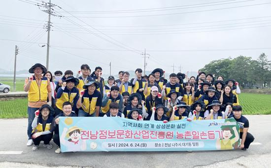 나주시가 전남정보문화산업진흥원과 함께 부족한 농촌일손 해소에 힘을 보탰다.